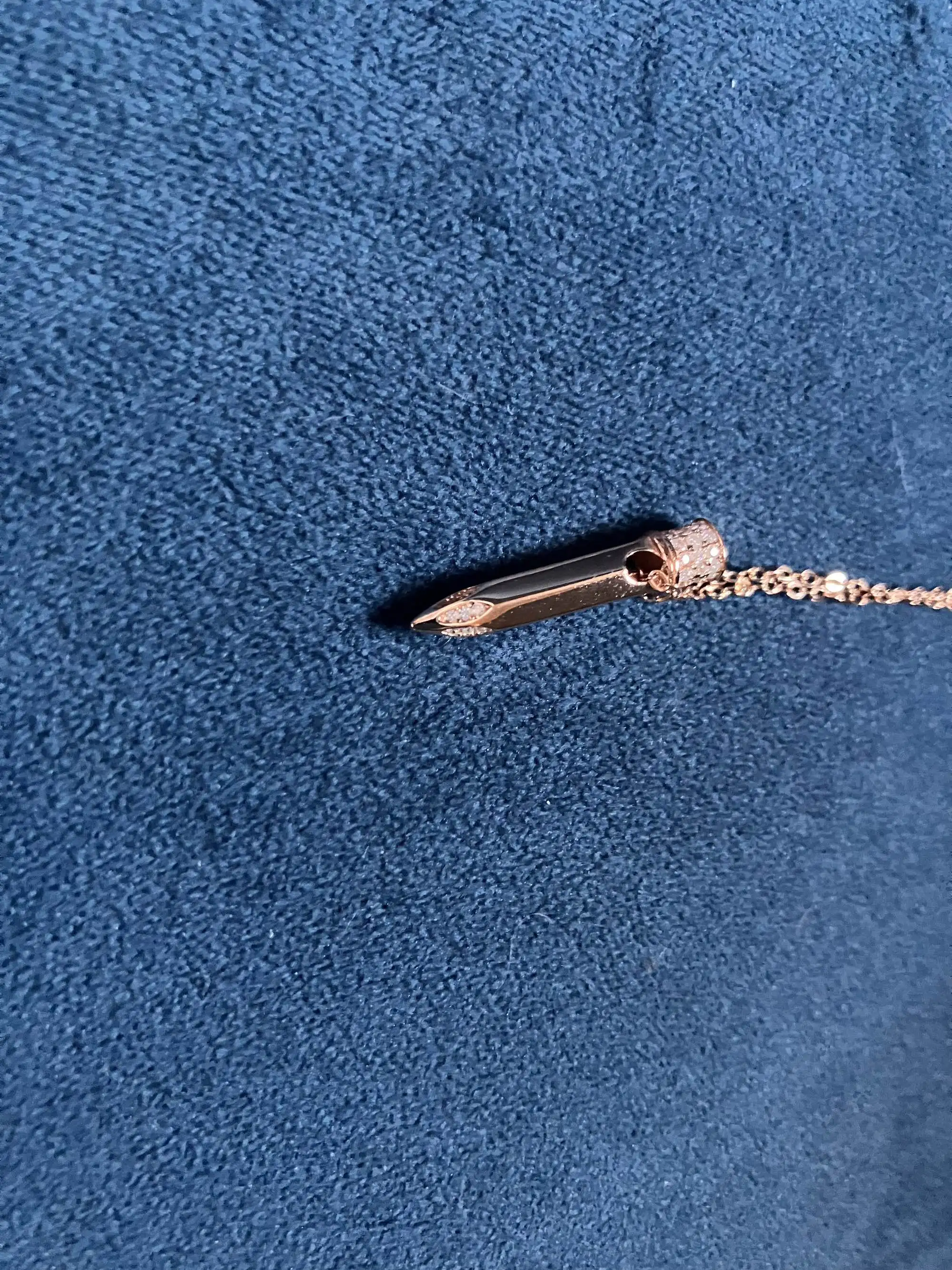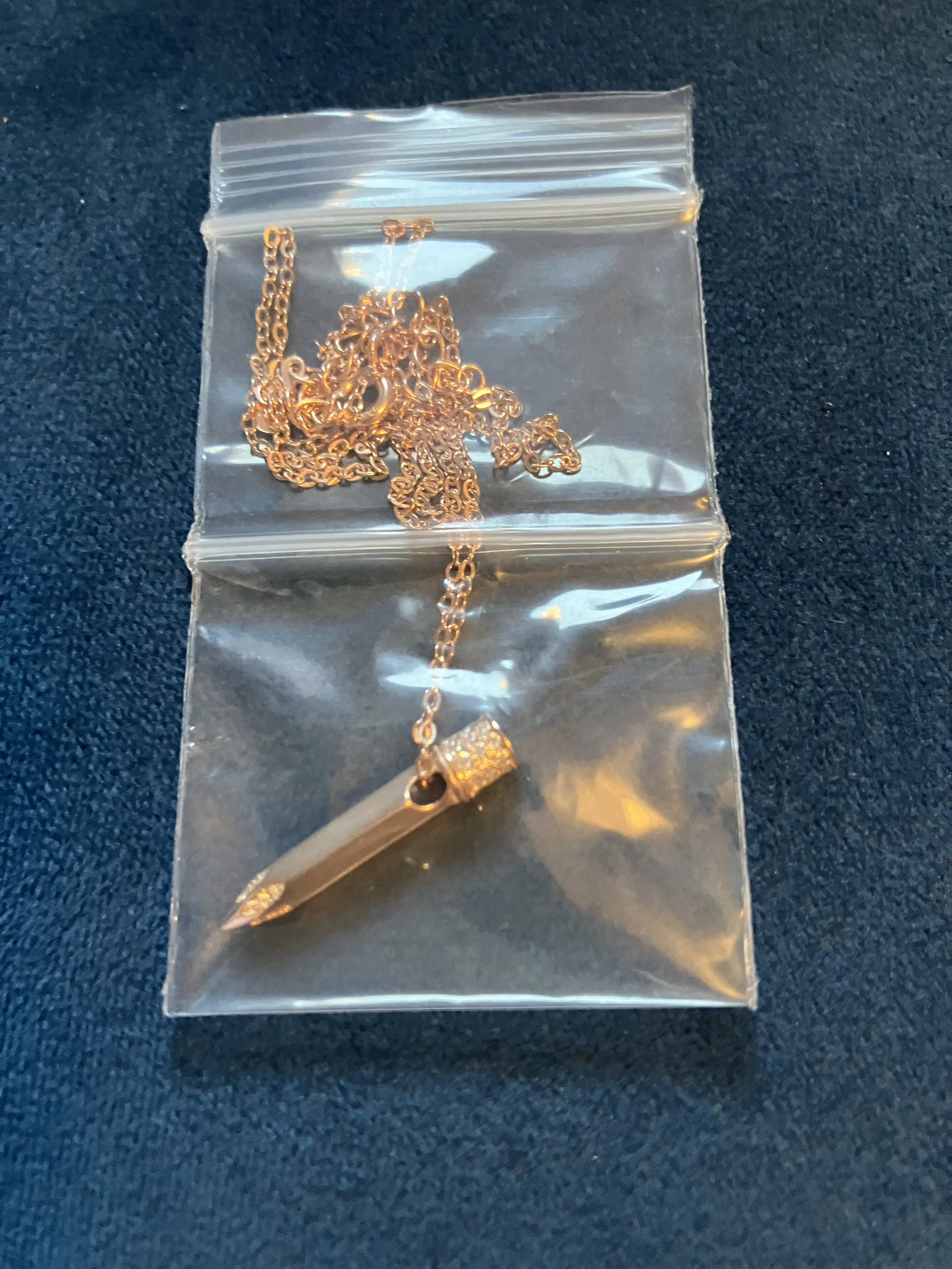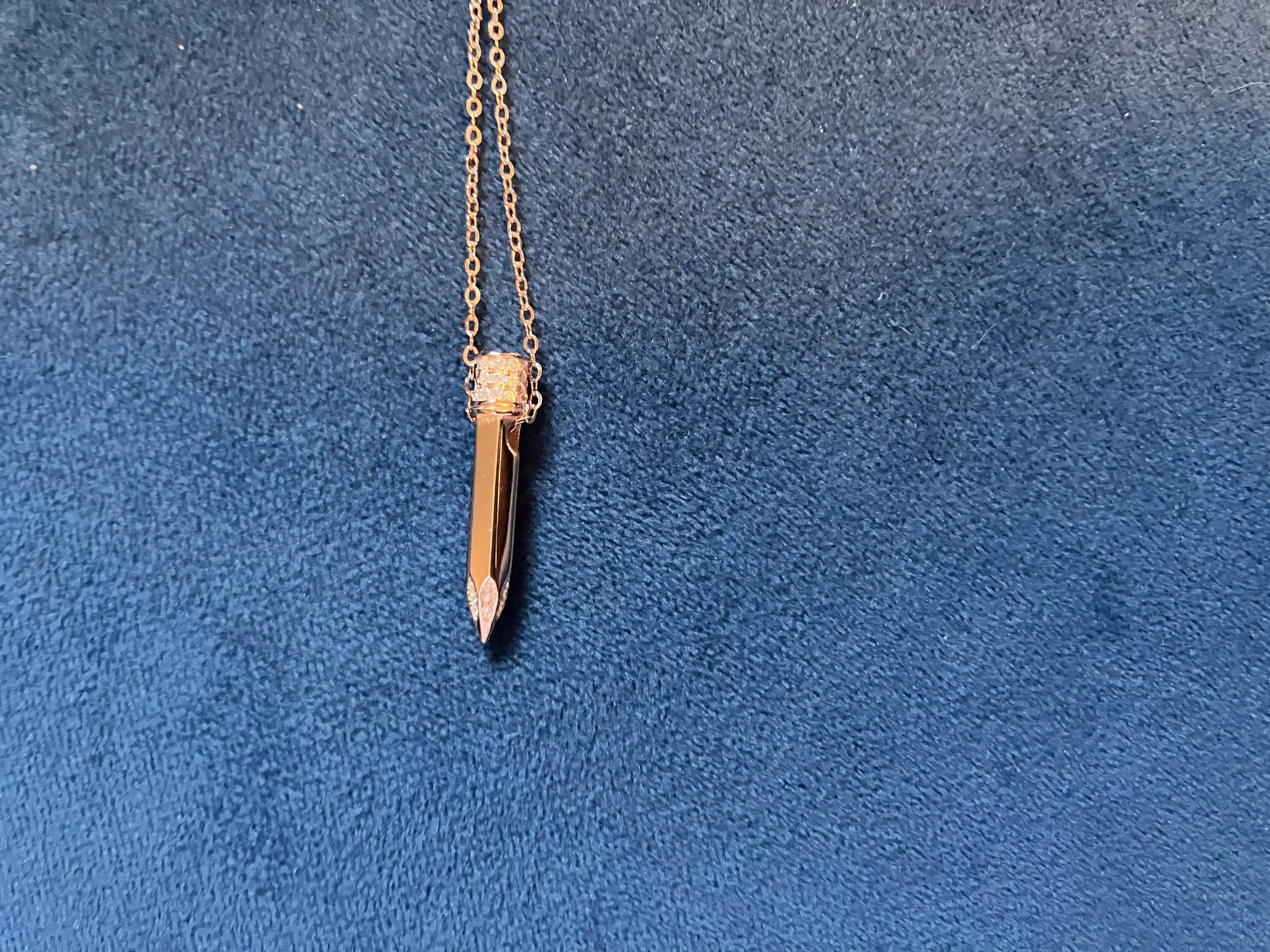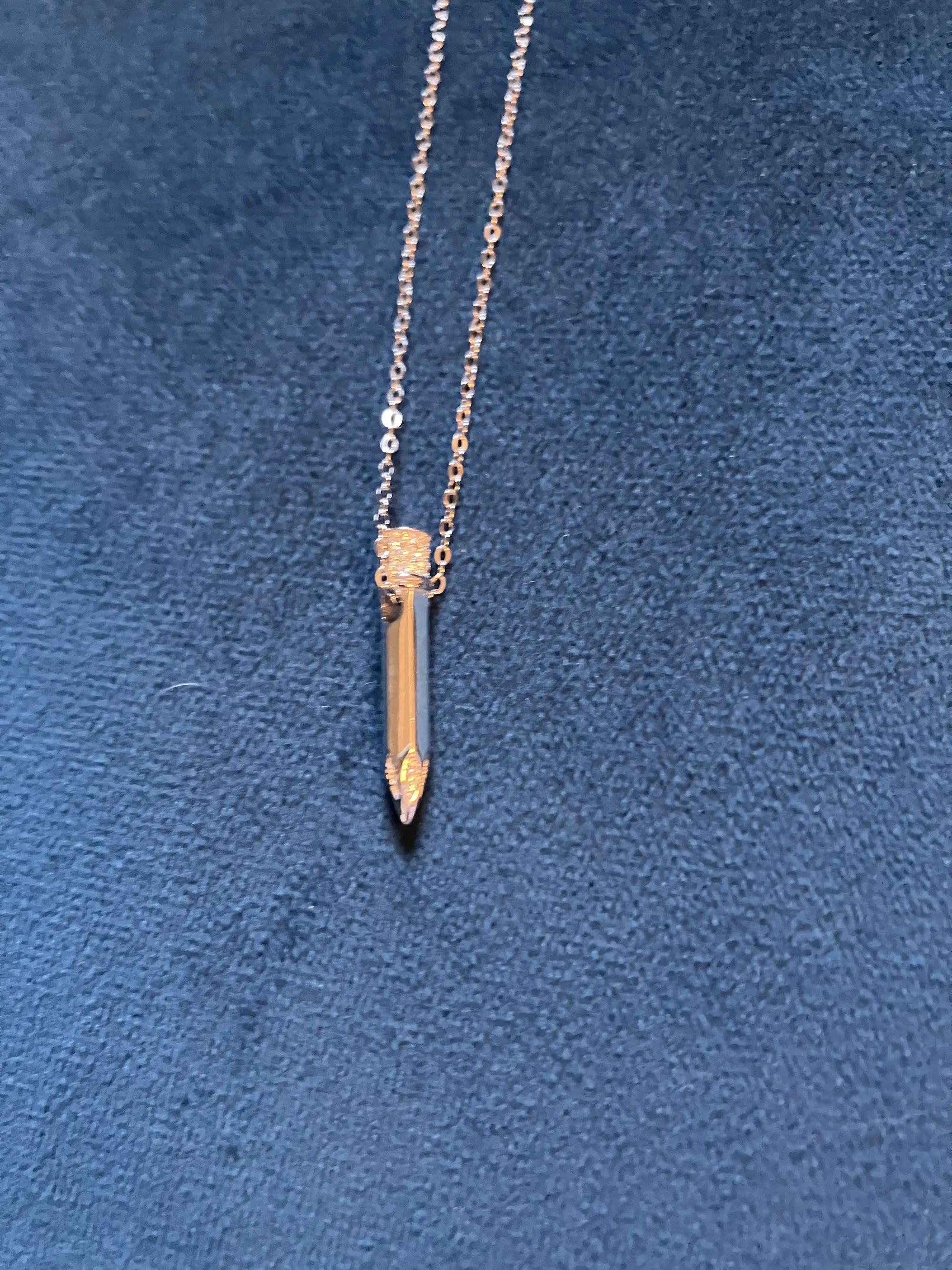 Item was packaged very well, in a box for stability, and then a bag that prevented the necklace from tangling. The charm feels petite but not delicate or fragile. All gems seem inlaid firmly, and they sparkle under the light. A nice high-polish surface, smooth to the touch, with no snags or dull spots. Good quality and worth the price; seller shipped promptly and with care.